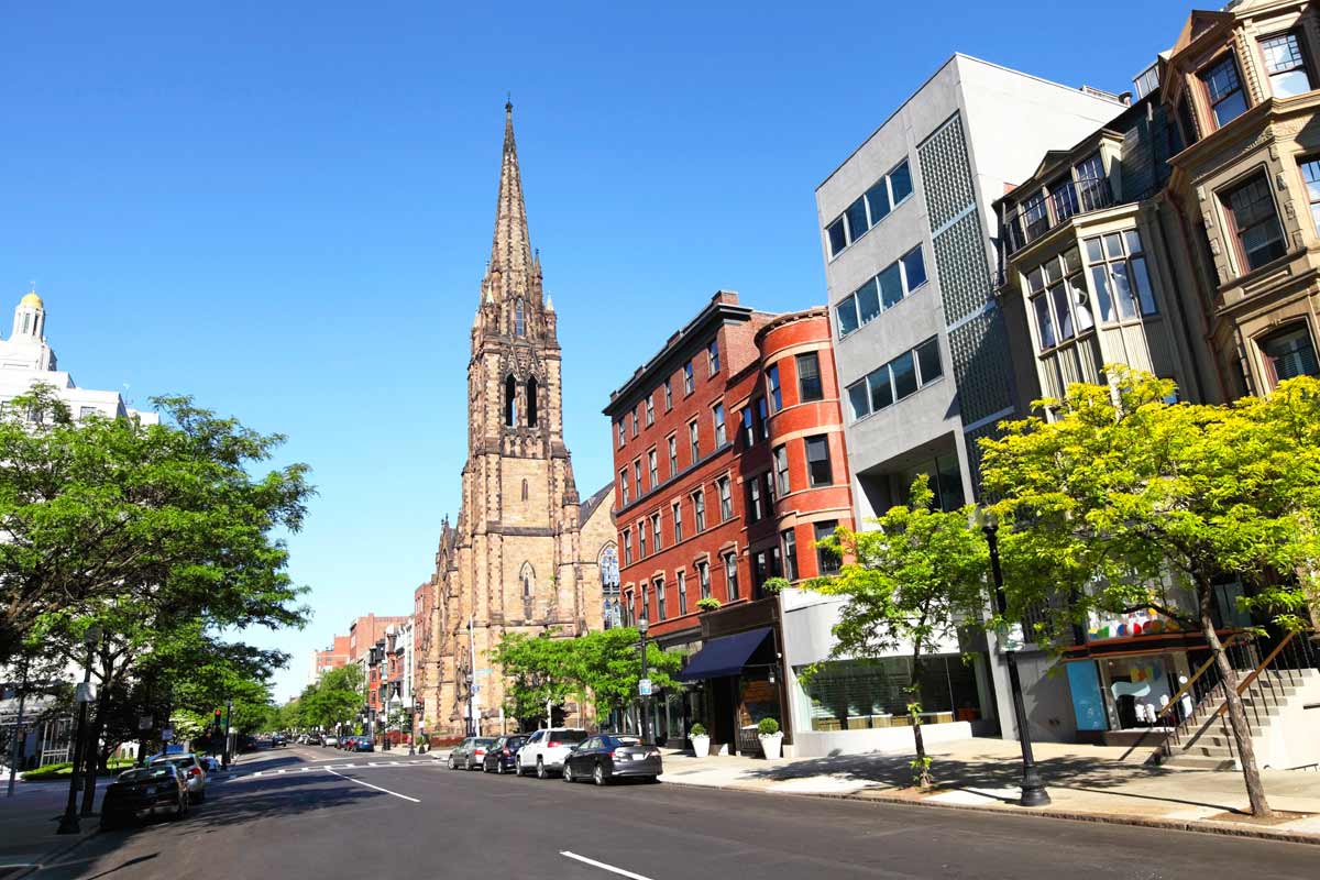 19th century Victorian brownstones, beautiful churches, 20th century office buildings, 21st century development reflect Newbury's Street reinvention as the center of commerce in Boston.