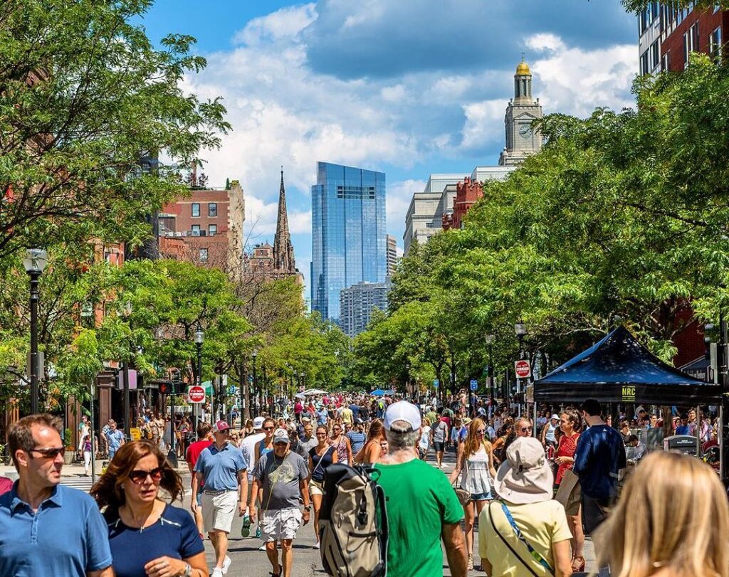 Today, Newbury Street continues to be Boston’s premier shopping destination, boasting over 300 stores, galleries, and salons, alongside approximately 52 cafés and restaurants. The eastern side near Boston Public Garden hosts luxury boutiques, while heading west, you’ll find more diverse, creative, and affordable establishments. The street is also famous for its regular events like “Open Newbury Street,” where traffic is blocked off on selected Sundays in summer and winter, creating a vibrant pedestrian-friendly environment filled with shopping, dining, and cultural activities. This blend of historical charm, upscale commerce, and bustling urban life makes Newbury Street one of Boston’s most beloved landmarks.